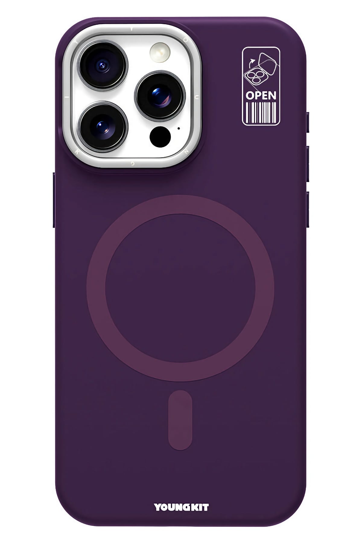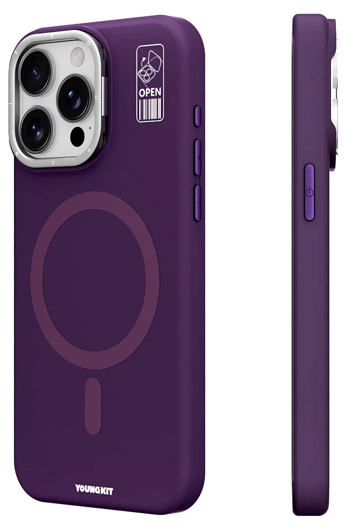 - Youngkit Bitty Cream iPhone 14 Pro Magsafe Compatible Silicone Case with Stand Purple