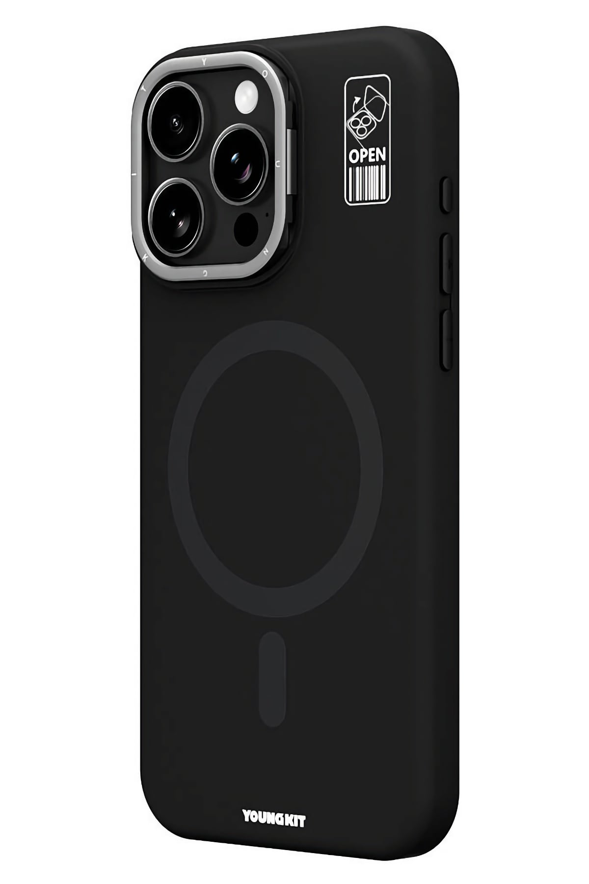 Youngkit Bitty Cream iPhone 15 Pro Max Magsafe Compatible Silicone Case with Stand Black