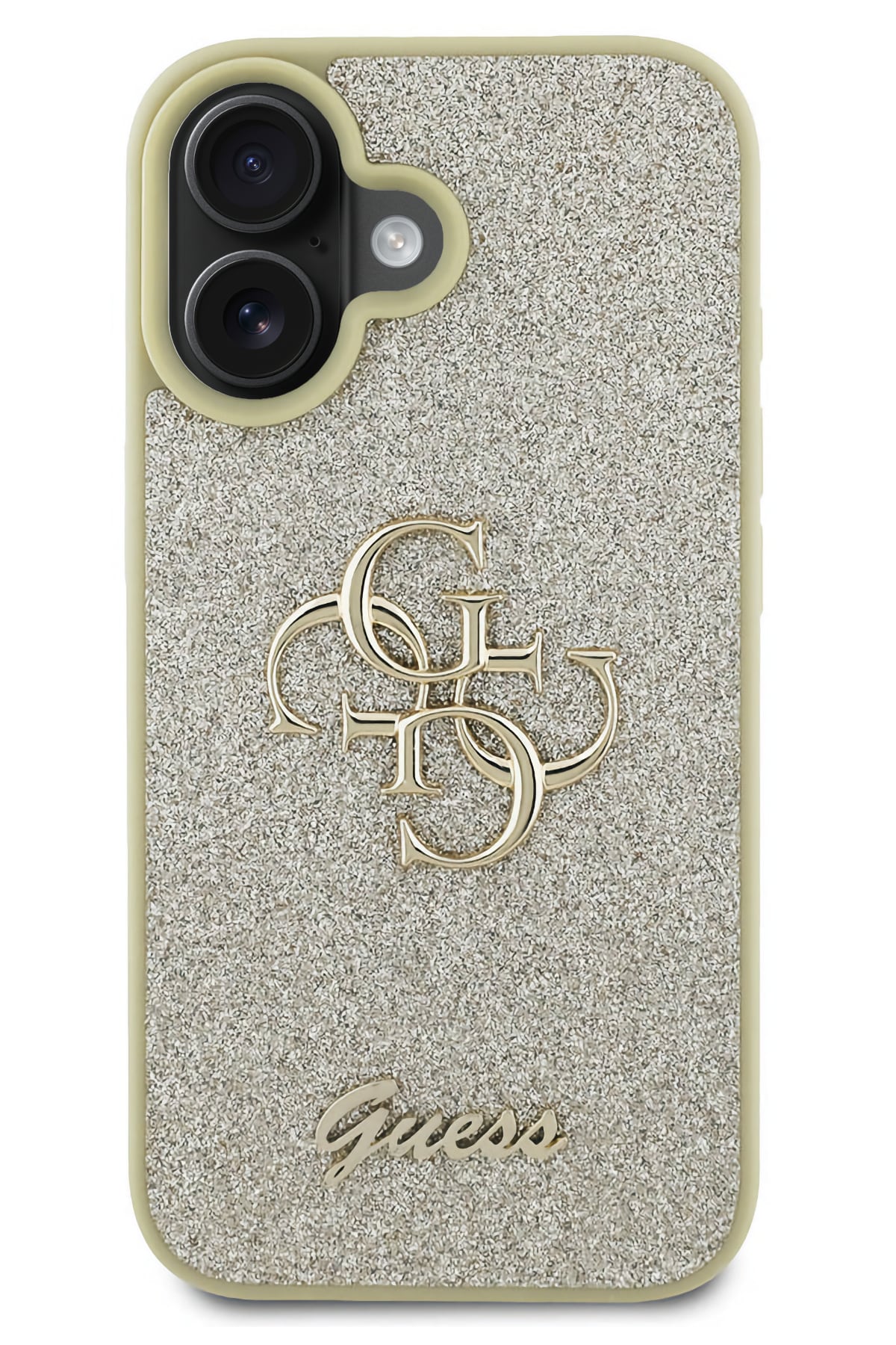 - Guess iPhone 16 Plus Compatible Glitter 4G Logo Case Gold
