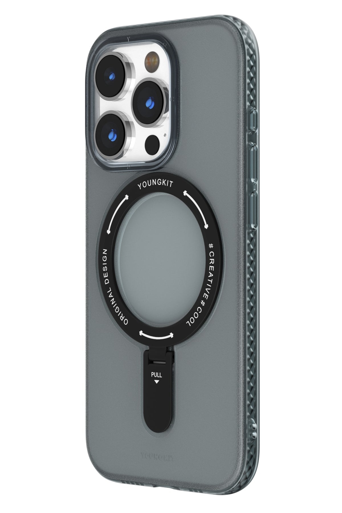 Youngkit Rock iPhone 15 Pro Max Compatible Magsafe Frosted Black Stand Case