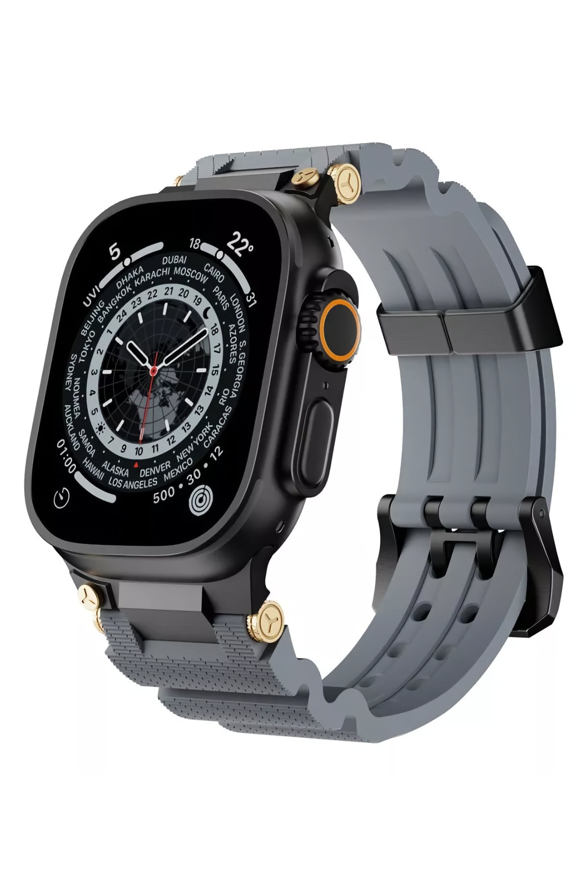 Apple Watch Ultra Uyumlu Gripline Kordon Monogrey Siyah Toka