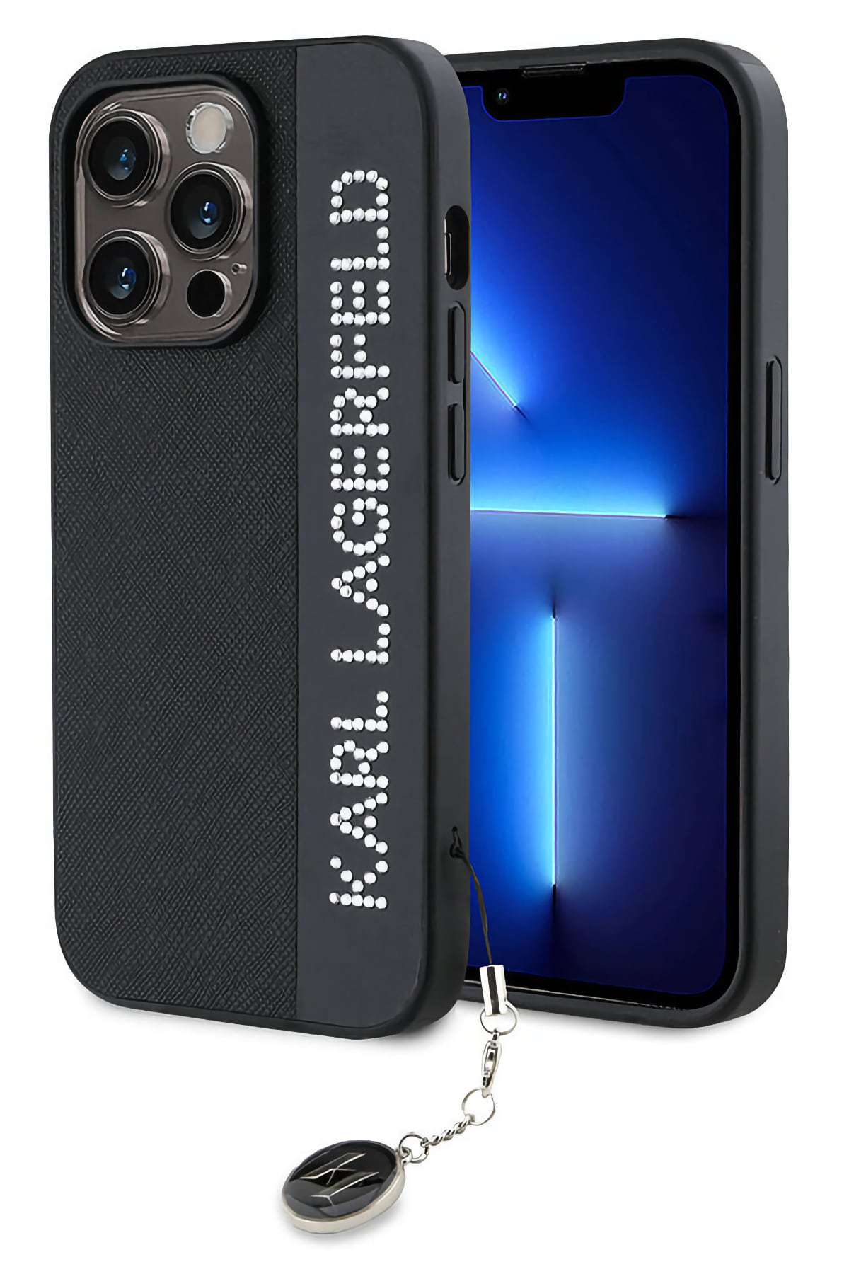 - Karl Lagerfeld Saffiano Rhinestones iPhone 15 Pro Kılıf Siyah
