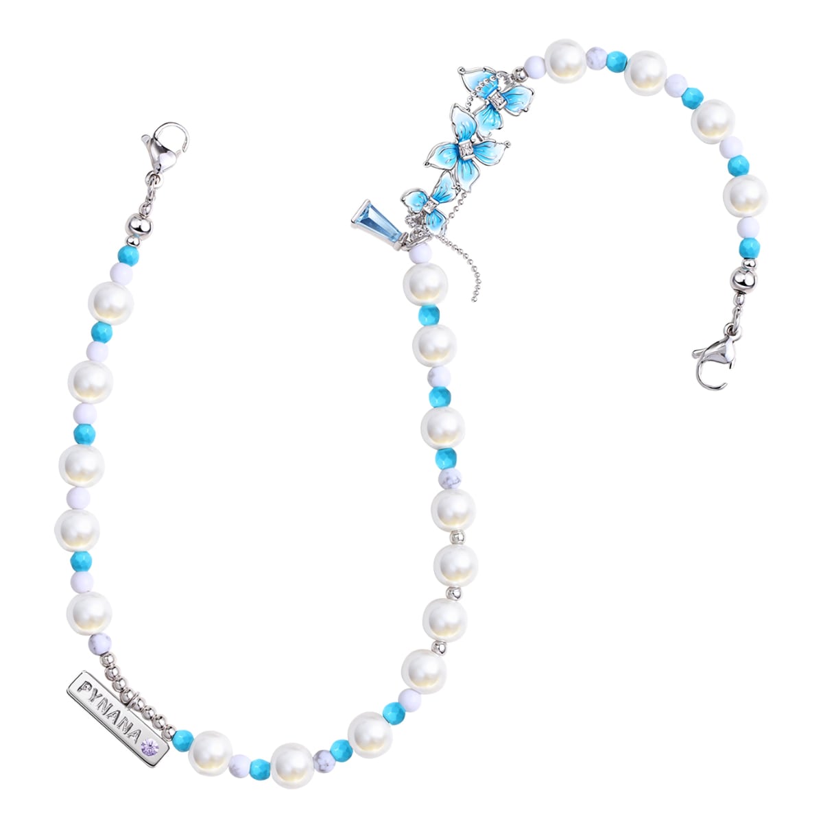 BlueFlower Serisi İnci Telefon Zinciri, emaye işçiliğinin zarafetini modern moda anlayışıyla birleştirerek göz alıcı bir tasarım sunuyor. Mavi ve beyazın eşsiz uyumu, metal gövde üzerine özenle işlenen narin iris yapraklarına dönüşüyor. Çiçeğin merkezinde yer alan kare zirkon taşları, yıldızların ışığını yansıtarak tasarıma mistik bir çekicilik katıyor.