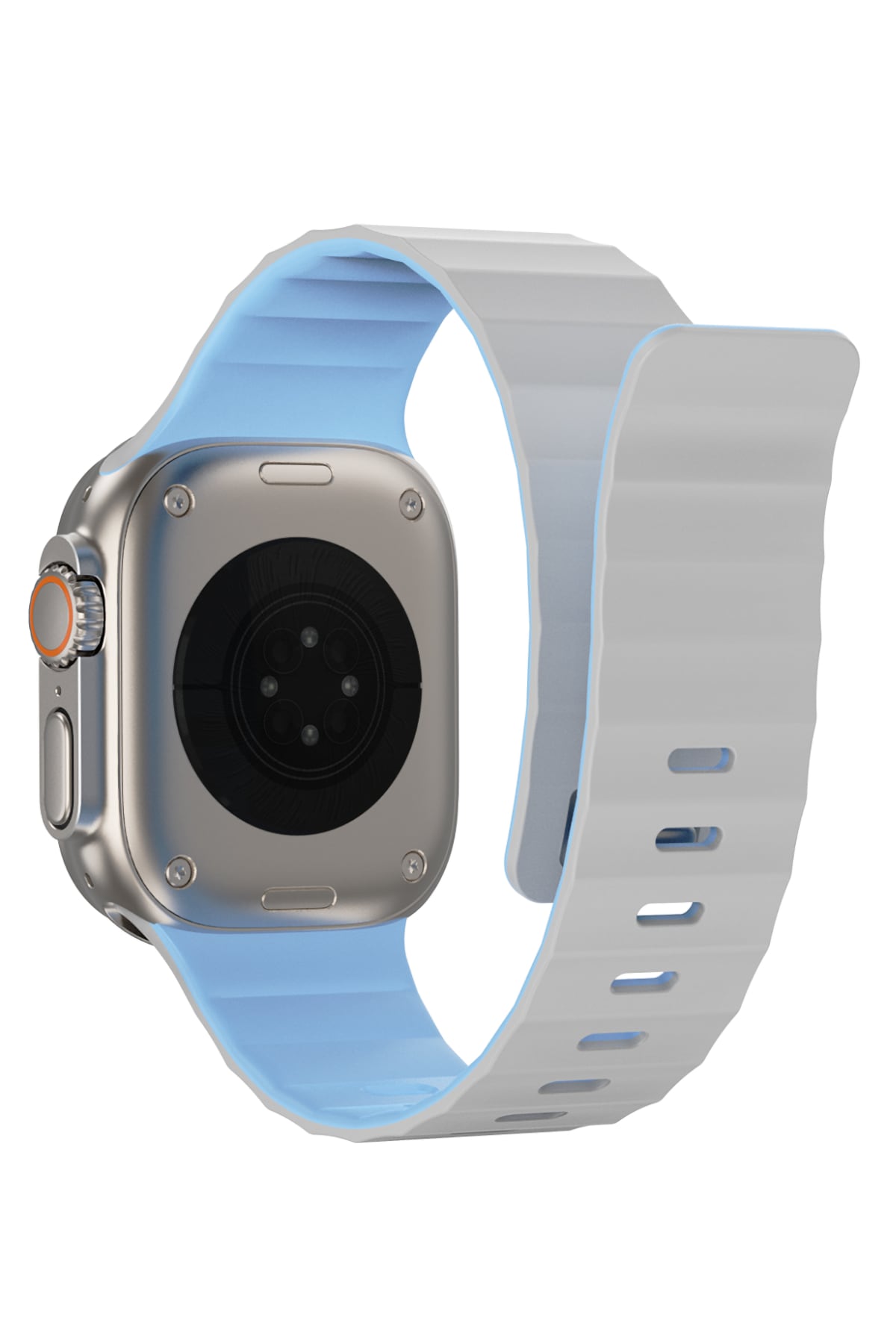 Modern ve sportif tasarımı hem günlük hem dinamik kombinlerle uyum sağlar. Kolay takılıp çıkarılabilen yapısı pratik kullanım sunarken, 49mm Watch Ultra kasa ile tam uyumlu ölçüde üretilmiştir.