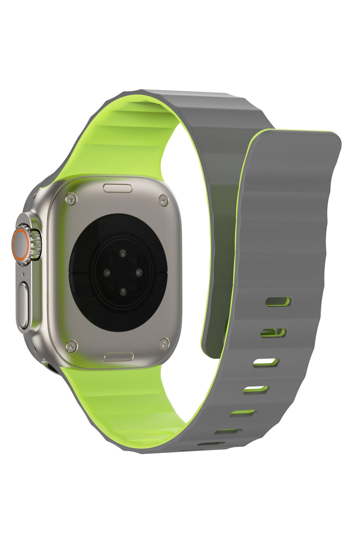 Modern ve sportif tasarımı hem günlük hem dinamik kombinlerle uyum sağlar. Kolay takılıp çıkarılabilen yapısı pratik kullanım sunarken, 49mm Watch Ultra kasa ile tam uyumlu ölçüde üretilmiştir.