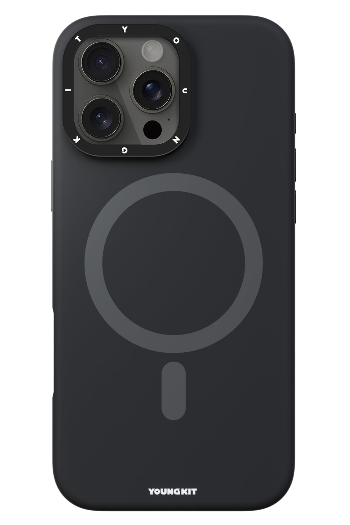 Youngkit Bitty Cream iPhone 16 Pro Magsafe Uyumlu Standlı Silikon Kılıf Siyah