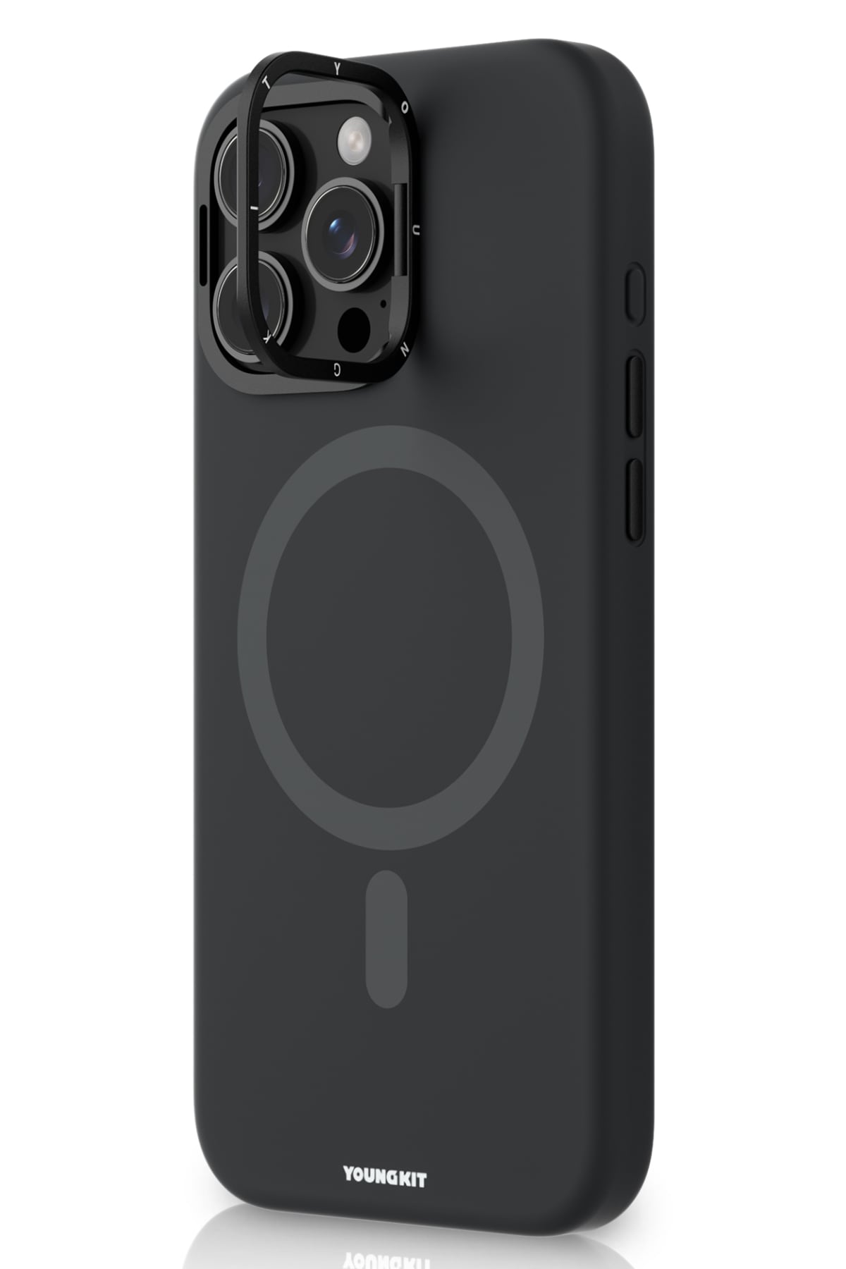 - Youngkit Bitty Cream iPhone 16 Pro Magsafe Uyumlu Standlı Silikon Kılıf Siyah
